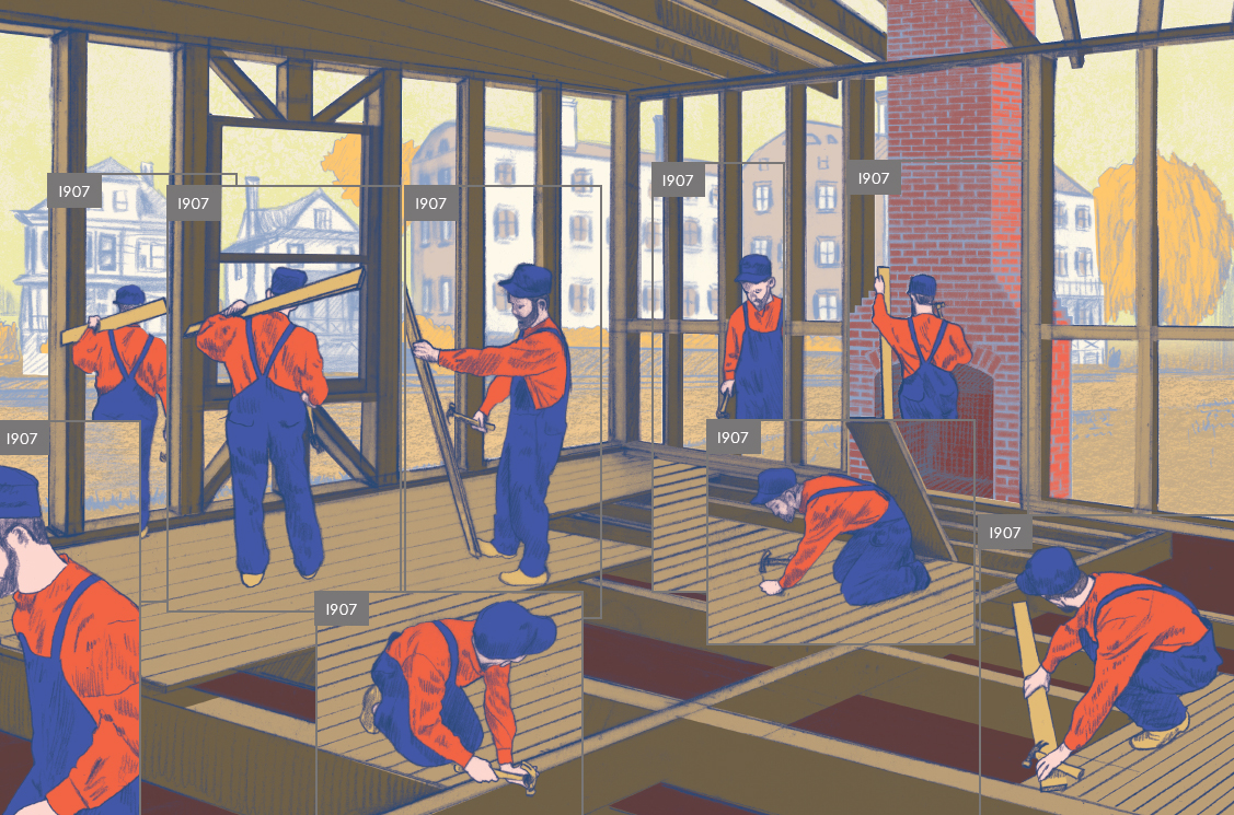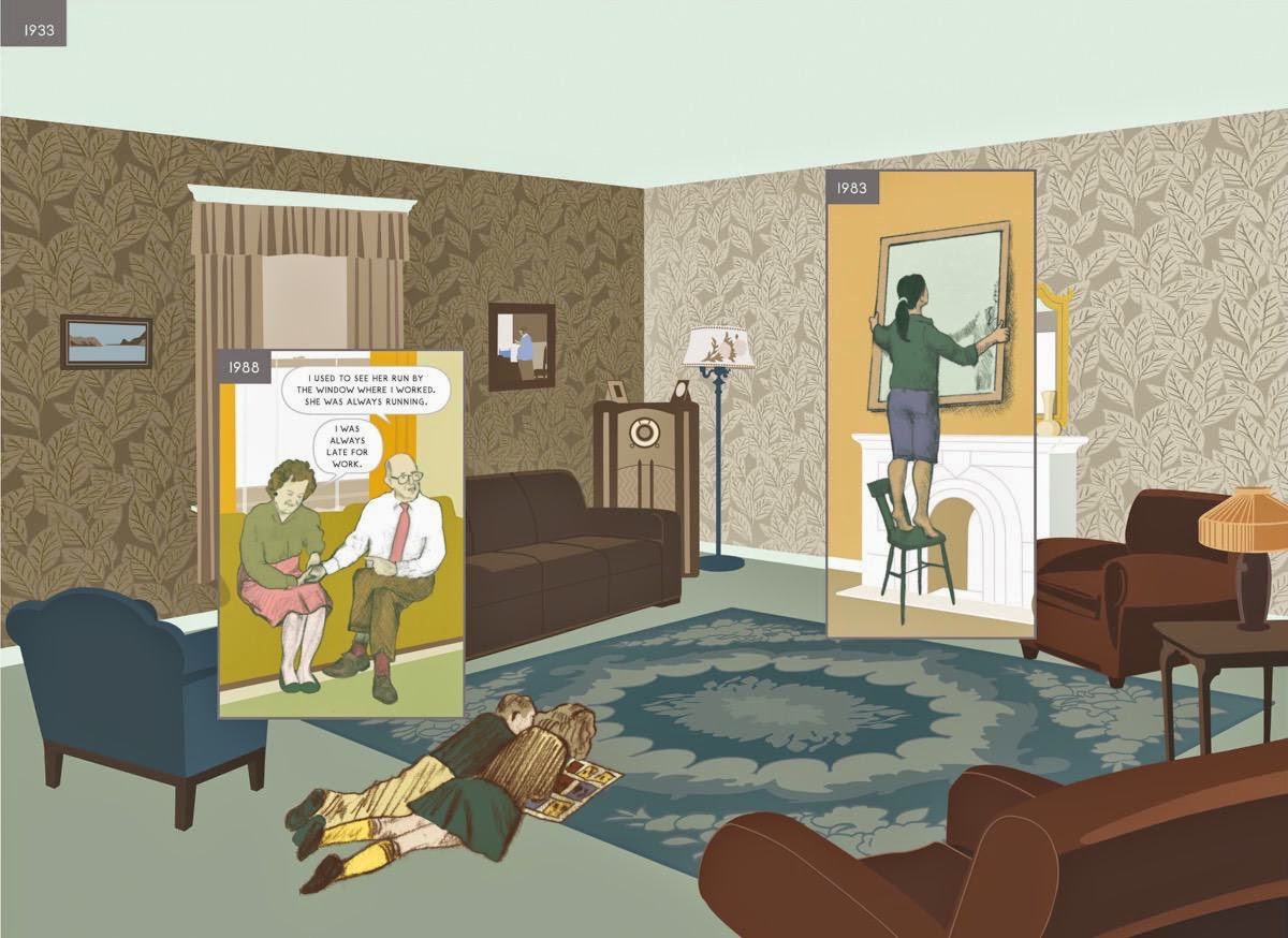 Magnifié par le dessin de Richard McGuire, où l’animé comme l’inanimé semble doué de raison, Ici pousse à son paroxysme un concept de découpage très ingénieux qui fera appel à vos capacités d’observation et à votre mémoire. Pour reconstituer l’histoire de plusieurs protagonistes, il ne sera pas rare de revenir en arrière dans les pages et de jouer au jeu des déductions. Comme l’on pourrait le faire en feuilletant un vieil album de photos.